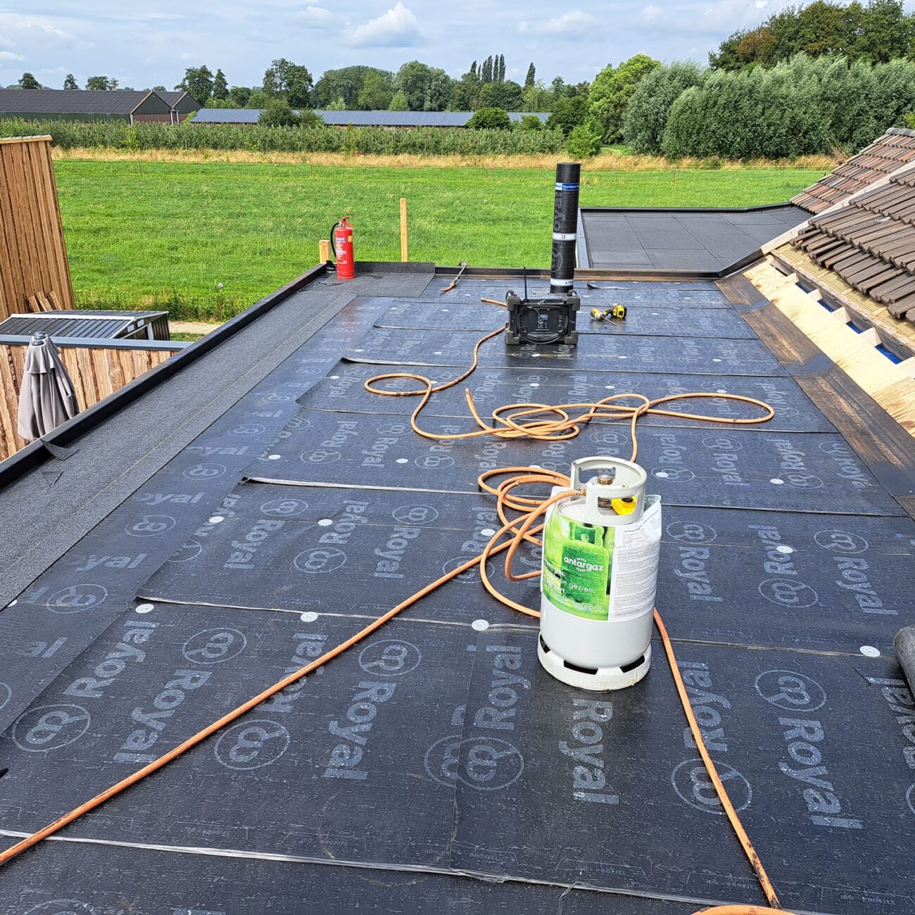 De toplaag van bitumen is de laatste stap in het proces. Deze laag biedt extra bescherming tegen weersinvloeden en UV straling. Het aanbrengen van de toplaag vereist precisie en ervaring om ervoor te zorgen dat het dak volledig waterdicht is. Bij Mats dakwerken gebruiken we alleen hoogwaardige materialen voor de beste resultaten. Deze toplaag beschermt uw dak niet alleen tegen het weer, maar draagt ook bij aan de energie efficiëntie van uw woning door betere isolatie.